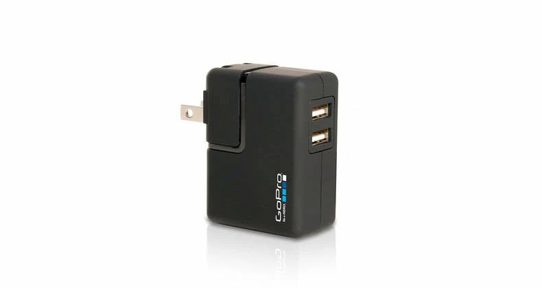 Charge two GoPro cameras simultaneously. The GoPro Wall Charger offers up to 2x faster charging of your GoPro batteries compared to charging via a USB cable and computer. You can charge and record simultaneously. Includes interchangeable AC plugs for US, UK, EU and AU style wall sockets.