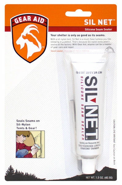 Luckily, there’s Gear Aid’s Sil Net™ silicone-based seam sealer. It’s fast and easy to use. The silicone adhesive in Sil Net waterproofs tent seams with just one application. Sil Net’s exclusive formula is not affected by extreme heat or cold. Plus, it comes in handy for repairs on moderate rips and tears.